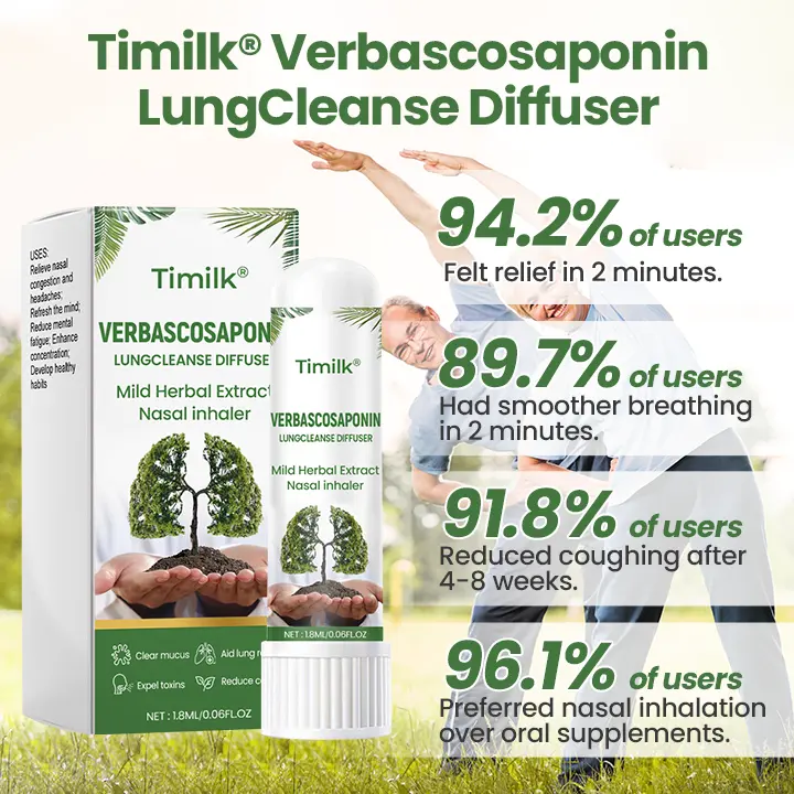 With 99% of people exposed to hazardous air pollution, respiratory support has never been more essential. If you’re a former smoker still struggling with that lingering cough, or tired of costly solutions that promised everything but delivered nothing, you’re not alone. Most people waste hundreds on products that barely work because they rely on the wrong delivery mechanism.But what if there’s a clinically inspired approach that works in 2 minutes instead of 90 minutes? Timilk®Verbascosaponin LungCleanse Diffuser’s advanced nasal inhalation technology delivers concentrated mullein extract directly to your respiratory system within 2 minutes — bypassing digestion entirely and reaching your lungs where you need it most.