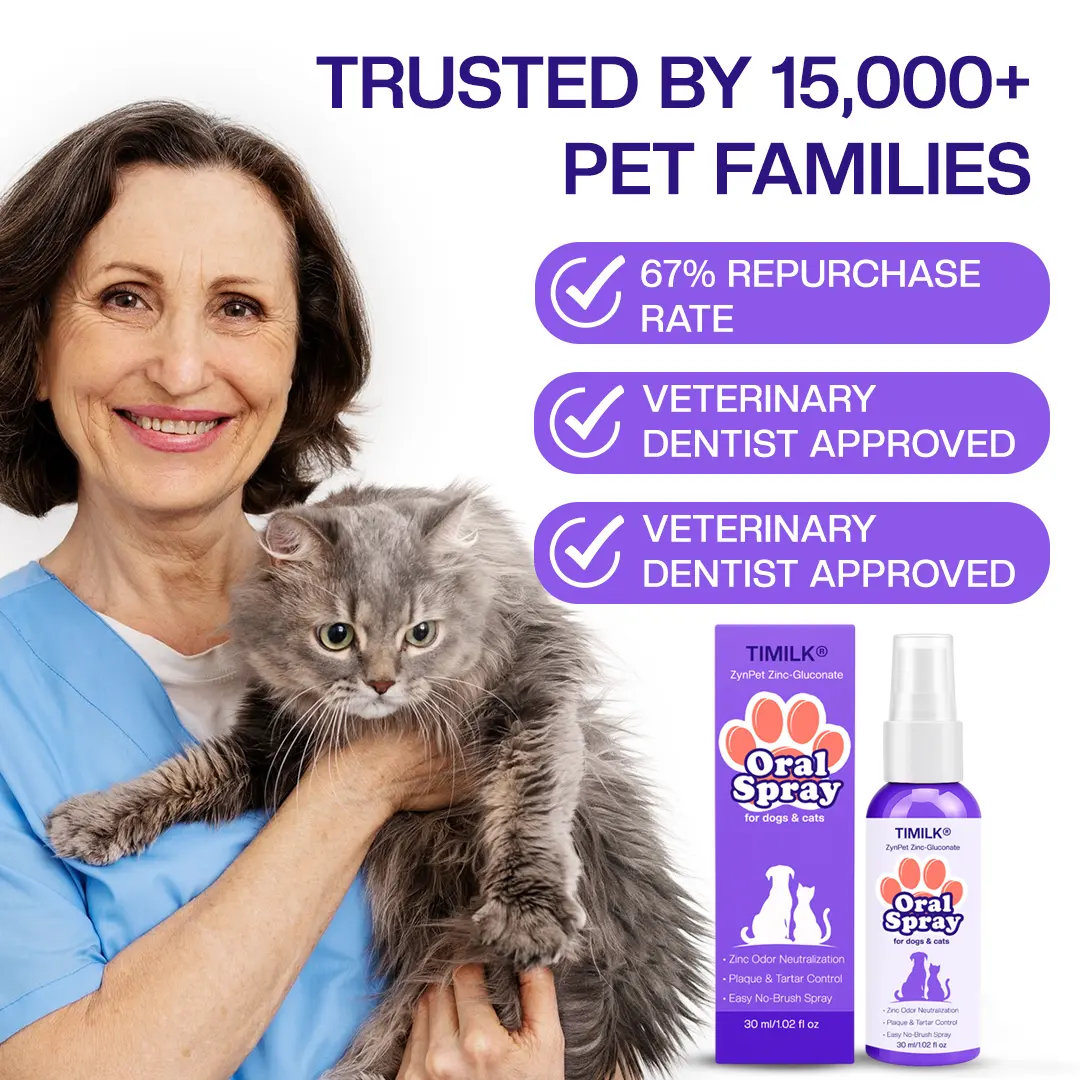 “We were quoted for an expensive professional dental cleaning. After 3 weeks with Timilk® ZynPet, the tartar buildup softened and reduced so much that the vet said we could postpone. Huge savings and a healthier dog.” – Andrew M., Georgia